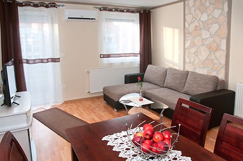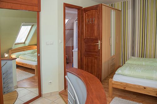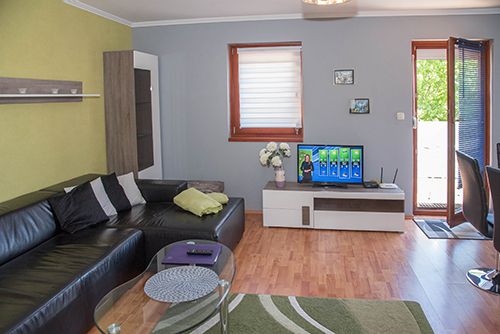 Wir bieten Ihnen eine schöne Ferienwohnung zur Miete für Aufenthalte in Keszthely an. Sie ist geeignet für 4-6 Personen, wobei vier Betten vorhanden sind und die fünfte und sechste Person im Wohnraum auf einer Schlafcouch schlafen. Die Wohnung ist ganzjährig nutzbar, besitzt WLAN, TV, Klimaanlage und effektiven Mückenschutz. Ein Balkon ist vorhanden. Ein eigener Parkplatz im Hof gehört zur Wohnung. Dieser ist per Funktor verschlossen. Es gibt eine Waschmaschine. Die Wohnung befindet sich ca. 1300 m vom Boulevard. Sie haben bereits in 400 m eine sehr gute Gastronomie, welche ganzjährig geöffnet ist. In ca. 1300 m befinder sich das große Stadtbad, in ca. 1000 m befindet sich der kleinere Libasstrand.